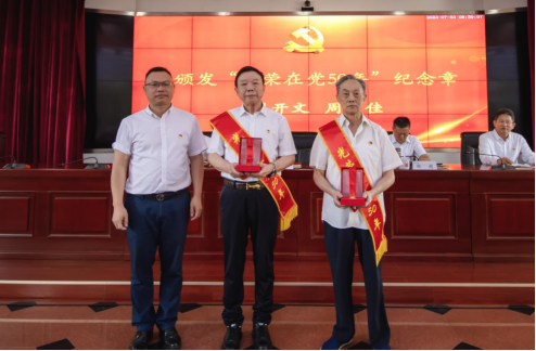 会议在庄严的国歌声中拉开序幕。中心为优秀共产党员、优秀党务工作者、先进基层党组织颁奖,为老党员颁发“光荣在党50年”纪念章。庆祝仪式在热烈气氛中进行,随后集中观看了《根脉-建党精神》专题片。