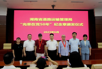 光荣在党五十年,初心如磐永不变。“光荣在党50年”纪念章是荣耀、是褒奖、是激励、是敬仰,体现了以习近平同志为核心的党中央的亲切关怀,蕴含着作为一名共产党员的“无限荣光”。局系统广大党员将以纪念章获得者为榜样,不忘初心、牢记使命,继承和发扬勇于担当、甘于奉献、勤于作为的优良传统,以一往无前的奋斗姿态聚力推动我省道路运输事业高质量发展。