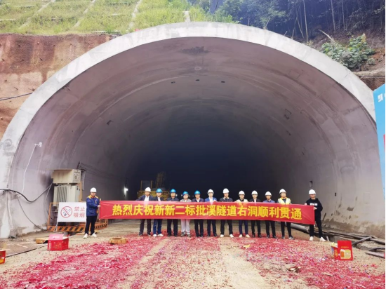 10月6日,新新高速项目第二合同段批溪隧道右洞顺利实现单洞贯通。