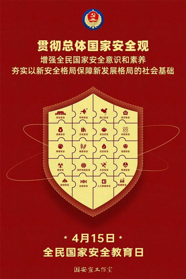 2015年7月1日实施的《中华人民共和国国家安全法》规定,每年4月15日为全民国家安全教育日。在第八个全民国家安全教育日来临之际,国安宣工作室发布了官宣海报。