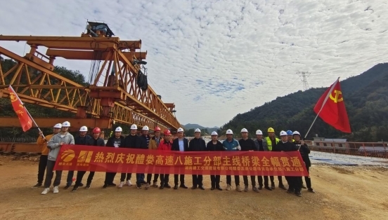 11月19日,项目关键控制性工程之一的小塘冲高架桥全幅贯通,这是醴娄高速主线首座全幅贯通的桥梁。