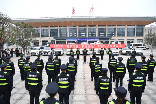 1月26日,长沙市交通运输综合行政执法局举行“打非治违护航春运”专项行动启动仪式。即日起,长沙市交通综合执法局全面动员,全员上岗,全力以赴,迅速投入到紧张繁忙的春运执法工作中去,向交通违法违规行为亮剑。