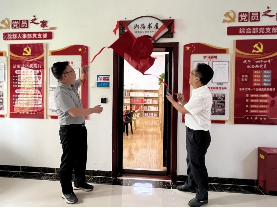 中心党委副书记、副主任王明安与湖南图书馆党委副书记、副馆长邹序明出席仪式,共同为“湘路书屋”揭牌。党群人事部、工青妇组织负责人、中心及湖南图书馆青年代表参加活动。
