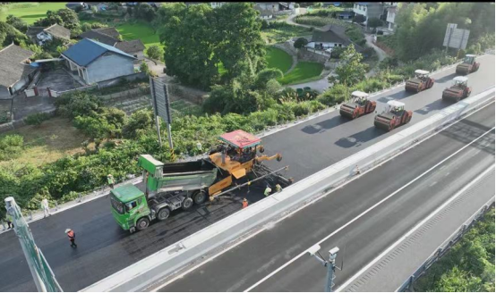 近日,G60沪昆高速邵阳至怀化高速公路大修工程一期施工现场一片热火朝天景象。热浪下,摊铺机、压路机等机械设备来回穿梭,施工人员头顶烈日,正抢抓工期忙建设,吹响冲刺半幅通车目标的号角。