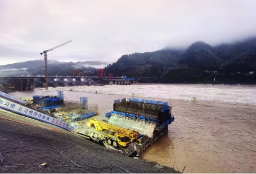 “我们在基坑外河水位下降后,组织抽排设备28台套进行集中抽排,同时密切关注岸侧高陡边坡的稳定情况控制抽排速度,抽水后对施工现场进行全面清淤和消毒,对所有受淹设备进行全面检查,结合汛期洪水过程数据,对项目实际的水位流量关系曲线进行了重新率定,并修订了项目防洪度汛预案。”项目相关负责人说。