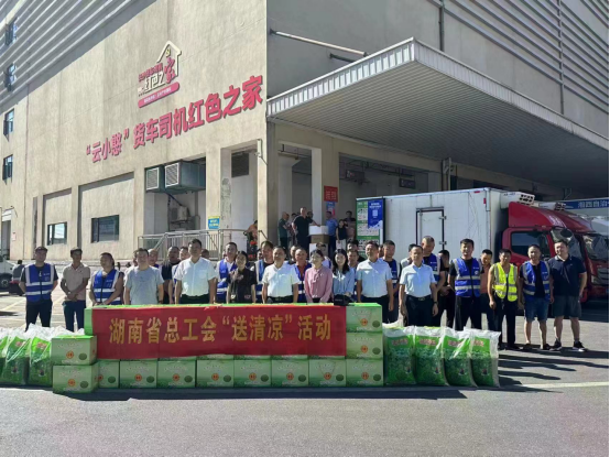 “感谢大家为千家万户幸福生活做出的无私奉献。”7月31日上午,在长沙云冷物流园货物集散场,傅筝一行为现场作业的货车司机送上“清凉”物资。
